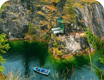 Рускеальский ландшафт удивляет гостей и поражает воображение. Активные развлечения в горном паре (экскурсия «Подземный космос» по пещерам «Рускеала», прокат лодок, верёвочный парк и другие оплачивается отдельно в самом парке)